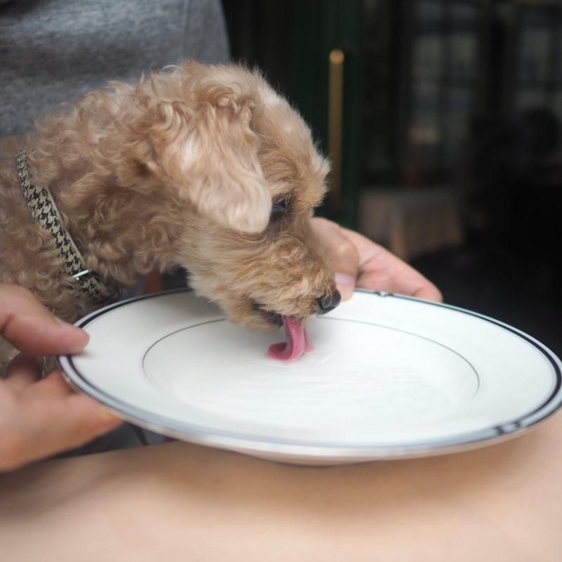 わんこ用のお水も素敵なお皿で持ってきてくださり、テーブルの上にコトン!