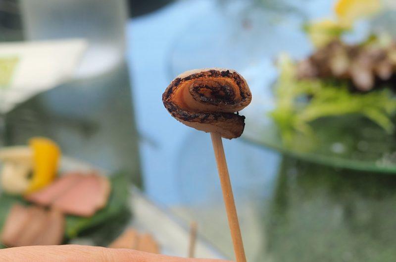 お肉の脂身が、上品にくるっと丸めて刺さっています✋