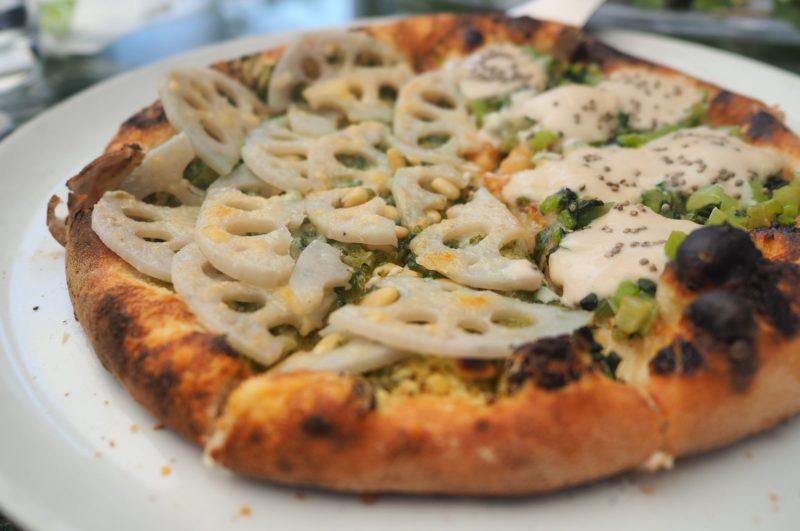 れんこんは、シャキシャキ食感とピザの持っちり感がベストマッチ!