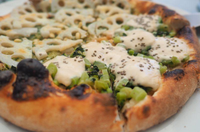 蓮根&野沢菜のピザ(ハーフ&ハーフ)