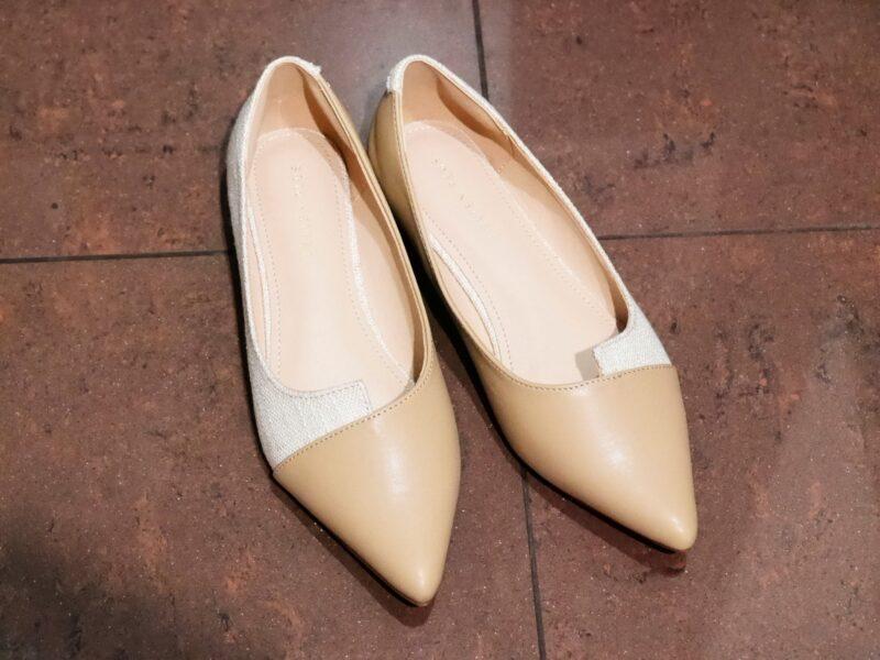 AmiAmiの切り替えポインテッドトゥフラットパンプスでパンツコーデ♡