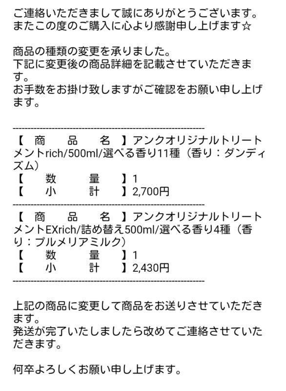 注文後すぐに「しまった!!」と(^^♪気付いた私は、注文確認メールに返信するカタチで、「注文内容を変更してもらいたい」とお願いしました✉