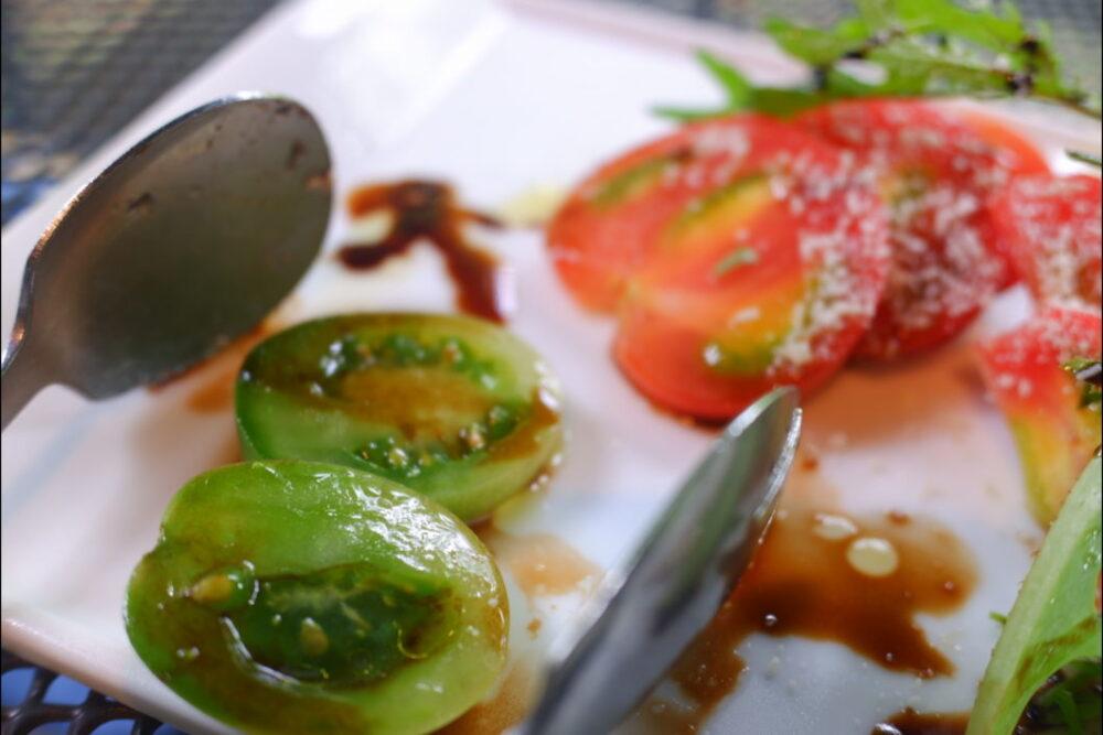 赤いプチトマトと違って、青いトマトの方が酸っぱさがありませんでした🎵