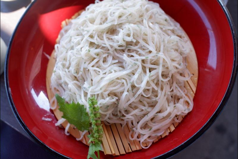麺にしそが練り込まれており、ふわっとシソの香りが鼻に抜けます💨