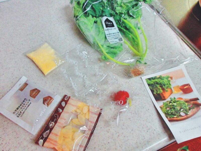 メイン料理は昨晩の残り物のカレーで済ませられるので、サラダはゴージャスにOISIXのものを使います✨