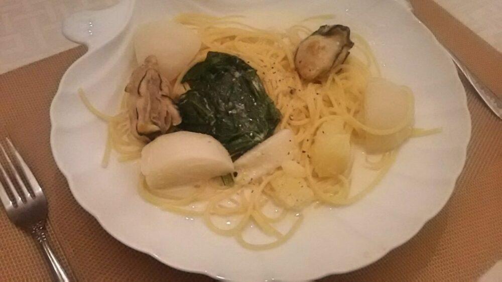 別で茹でたパスタに、生クリームとコンソメキューブを入れて、カブと混ぜたら完成✨