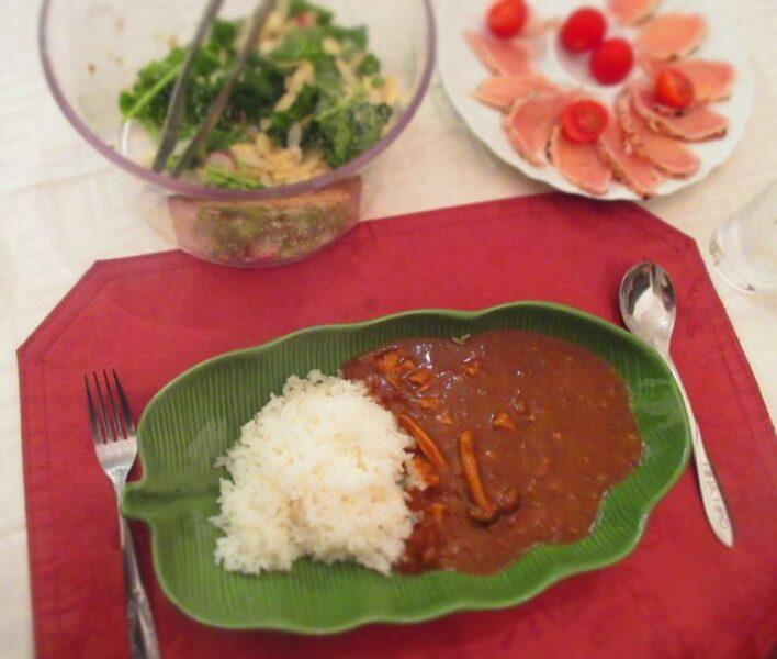 ケールのチーズナッツサラダと昨晩の残りのカレー