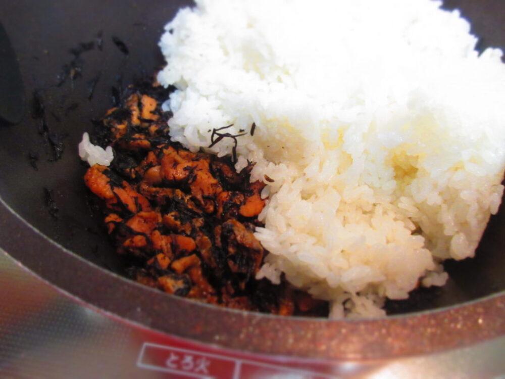 ▶ひじきごはん ↑写真のように、具材だけ煮詰めておいて、白いご飯にまぜまぜ🎵