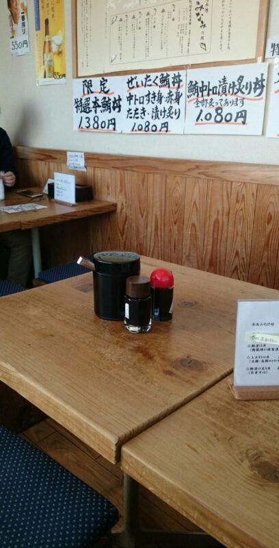 おすすめは、炙りまぐろの方に普通醤油、刺身の方に甘口醤油だそう。←たしか。。